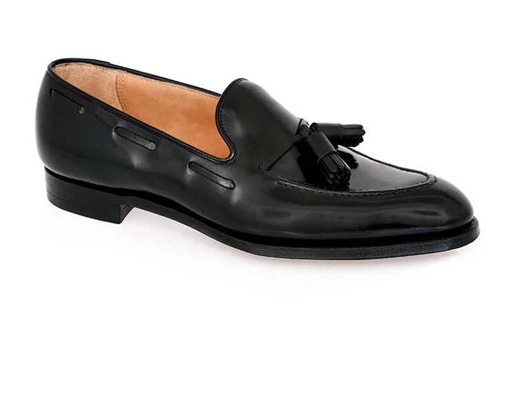 AIDEN - Black CalfA classic tassel loafer with braided interlacing. Featuring leather linings and Goodyear®-welted soles. Slide 1 Slide 1 (current slide) Slide 2 Slide 2 (current slide)