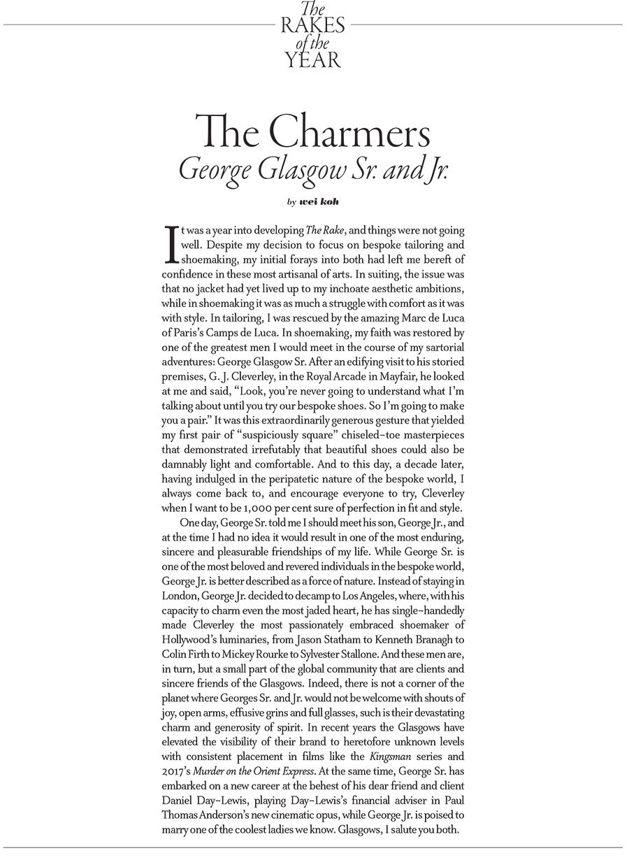 Mr. George Glasgow Snr & Mr. George Glasgow Jr are honoured to be included in The Rakes 2017 awards. The two George’s are delighted to be joined by such wonderful & elegant people on the list and congratulate all of them.